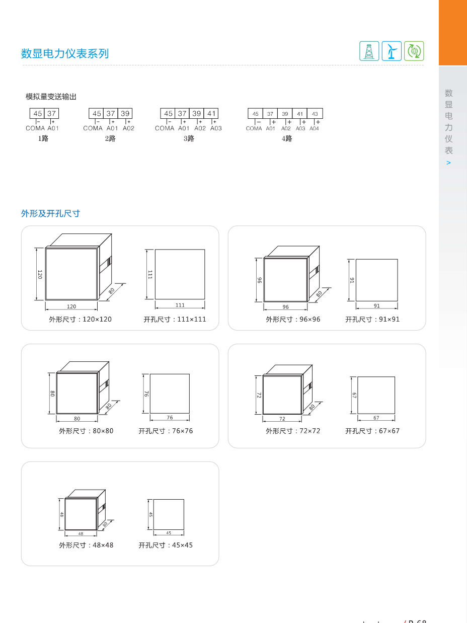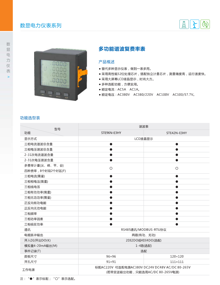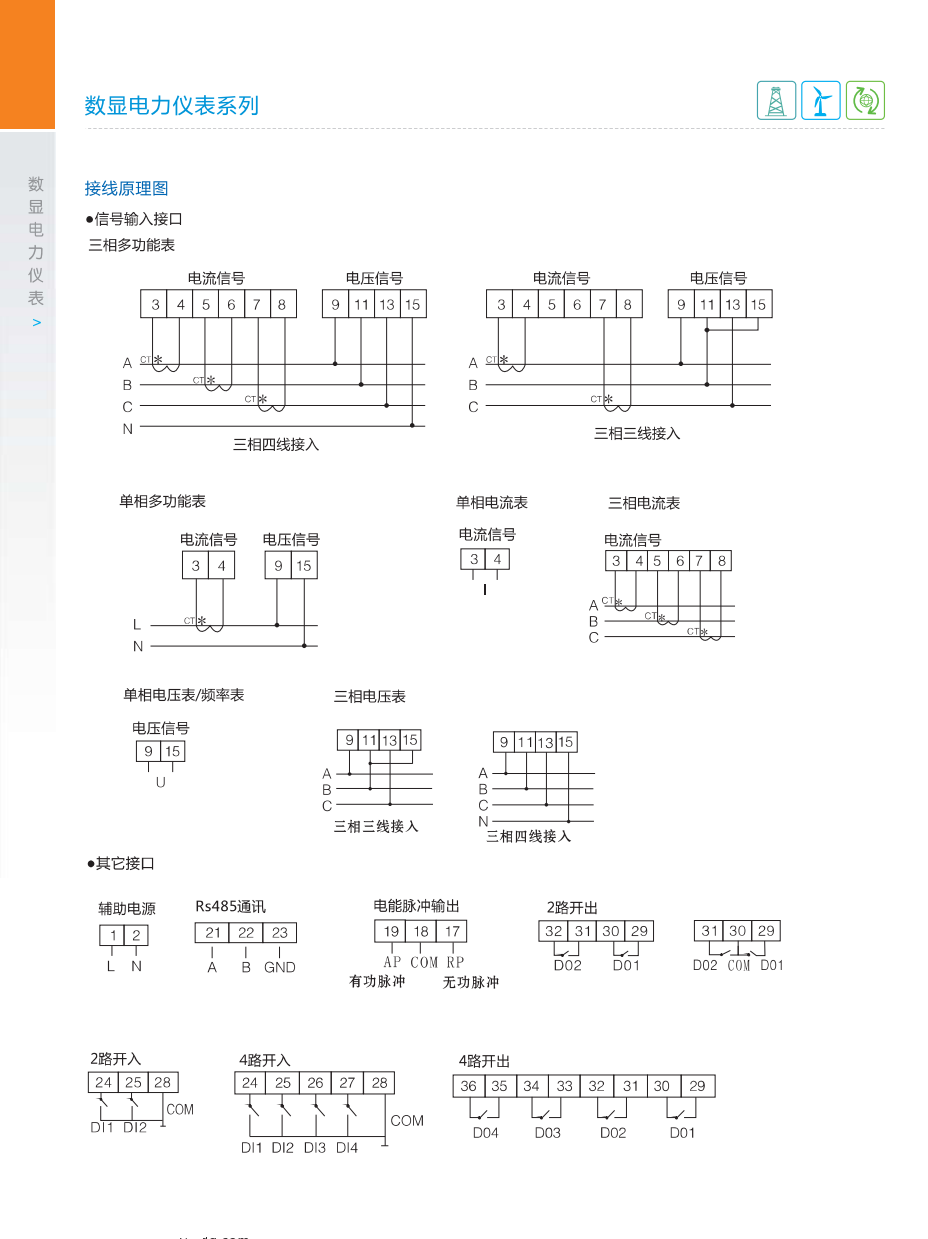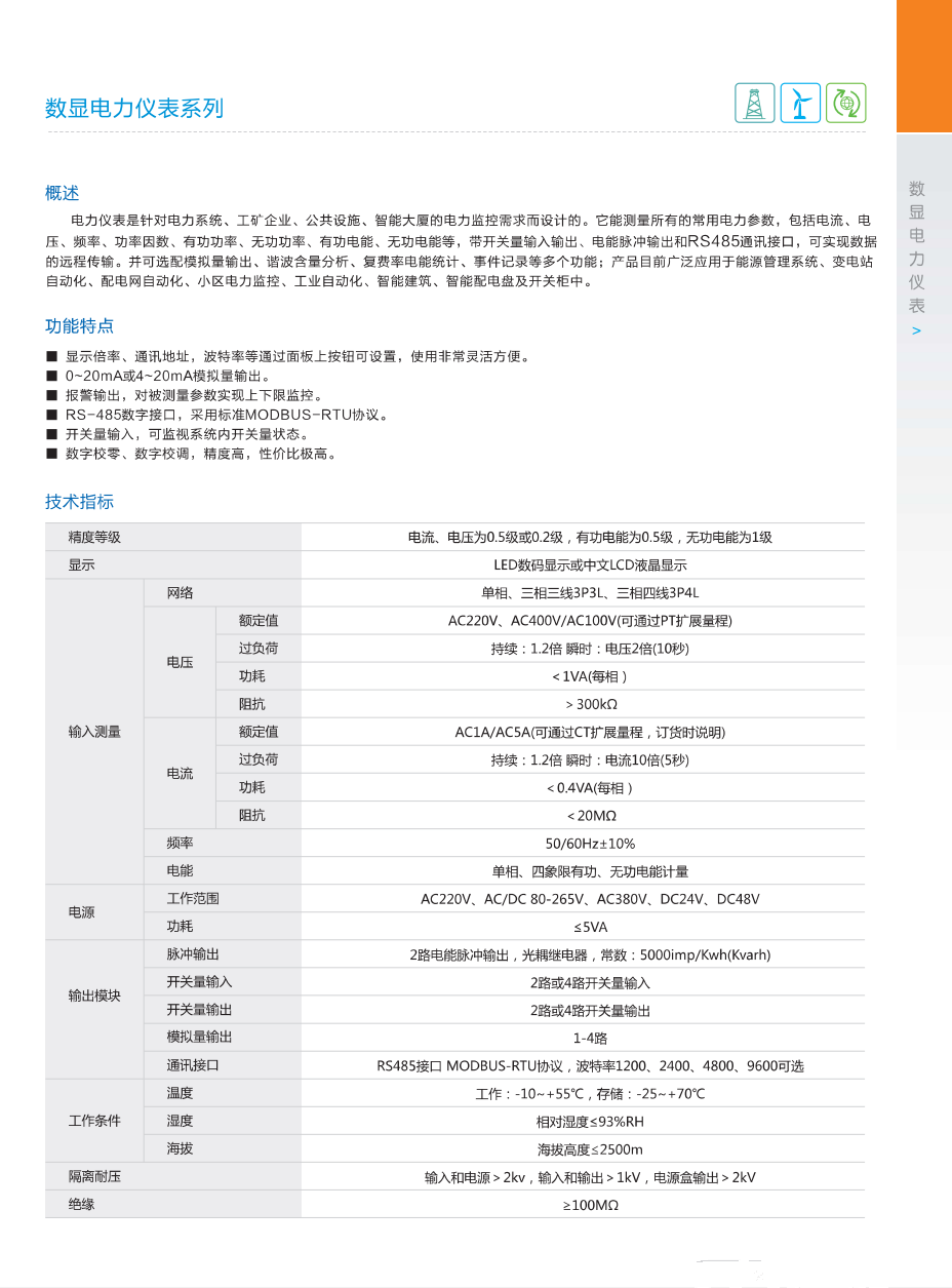 電力儀表是針對電力系統、工礦企業、公共設施、智能大廈的電力監控需求而設計的。它能測量所有的常用電力參數,包括電流、電壓、頻率、功率因數、有功功率、無功功率、有功電能、無功電能等,帶開關量輸入輸出、電能脈沖輸出和RS485通訊接口,可實現數據的遠程傳輸。并可選配模擬量輸出、諧波含量分析、復費率電能統計、事件記錄等多個功能;產品目前廣泛應用于能源管理系統、變電站自動化、配電網自動化、小區電力監控、工業自動化、智能建筑、智能配電盤及開關柜中。